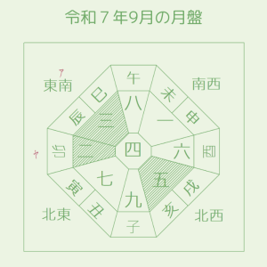 2025年9月は乙酉(きのととり)の月で四緑木星が中央に在座しています。