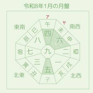 2026年1月は己丑(つちのとうし)の月で、中央に在座しているのは九紫火星です。